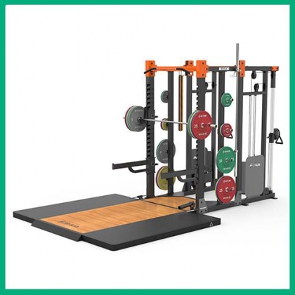 功能区:杠铃片整组挂架、万向炮筒、举重杆保护架、单杠架、双杠架、大飞鸟功能