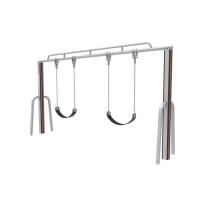锻炼方法:手扶吊环链,坐在座架上,随着秋千的摇摆均匀用