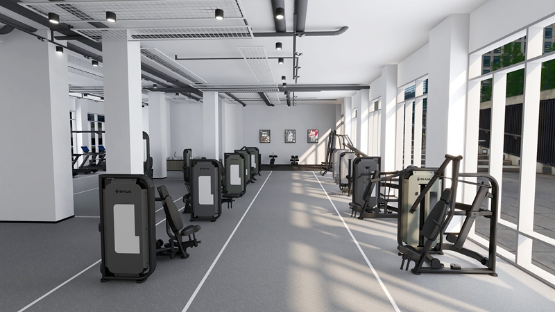 此方案要求面积小于420平米,此方案适用于企事业单位健身房、酒店会所健身房、学校健身房、部队健身房、商用健身房、楼盘社区,能满足30-50人同时健身使用。