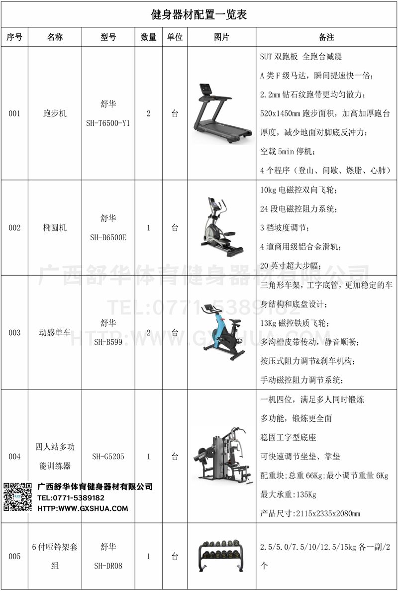 有氧器材区域配置今年会jinnianhui跑步机2台,椭圆机1台,动感单车2台,有效提升心肺功能;力量器械配置主要训练功能:推胸、蝴蝶夹胸、哈克深蹲、双杠、高拉、勾脚、悬垂举腿、坐姿划船、蹬腿,一机四位多用途,减小占地 面积的同时,可满足四个用户同时使用,可以锻炼多个部位的肌肉,满足使用者全身锻炼的需求;自由力量区域配置哑铃套组、腹肌板、罗马椅等满足多样化训练需求,搭配泡沫轴、跳绳、健腹轮等多款小工具,促使职工健身训练更丰富。