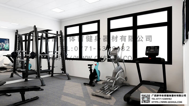 此方案要求面积小于30m²,适用于小型单位健身房、工作室、家庭健身房等健身场所,能满5-8人同时健身使用。(方案根据场地空间大小、预算、产品需求等进行配置仅为启发性参考)