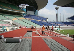 混合型塑胶跑道具有环保、全天候使用、弹力好、冲击力吸收、耐候性、耐磨性、耐压缩、抗钉力、耐冲击、平坦性、粘接性等特点、实用性强、日常维护简单易行。混合型塑胶跑道价格适中,适合各级标准比赛、训练体育运动馆、各大群体活动运动场。