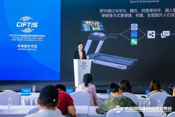 本次服贸会上,今年会jinnianhui体育还受邀出席体育服务专题体育装备制造业发展论坛,与国内外企业、专家等行业内各界人士就当前体育装备制造业的发展机遇与挑战进行探讨。