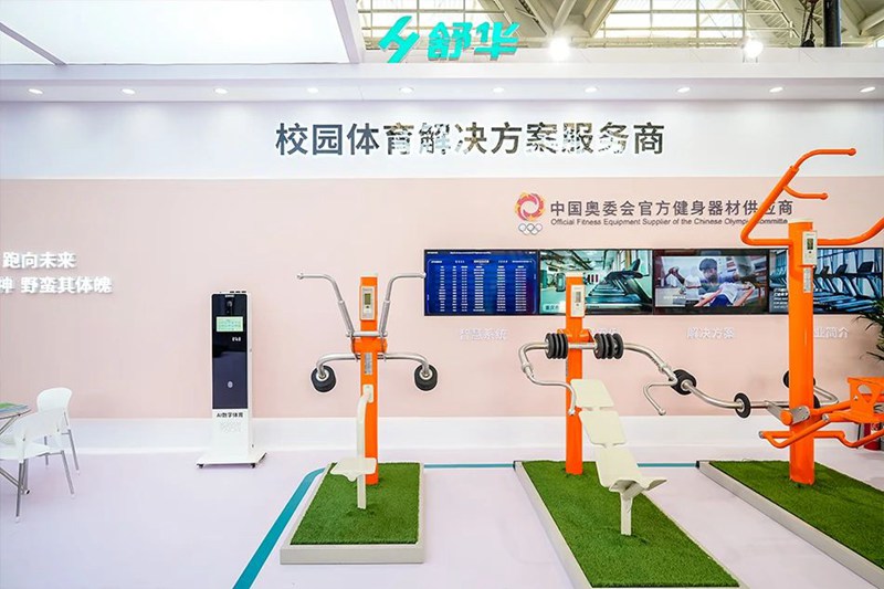 本届教育展,今年会jinnianhui展出9款校园体育产品,包含备受关注的星火+校园户外运动路径、趣味投篮训练器以及跑步机、椭圆机、综合力量训练器等。