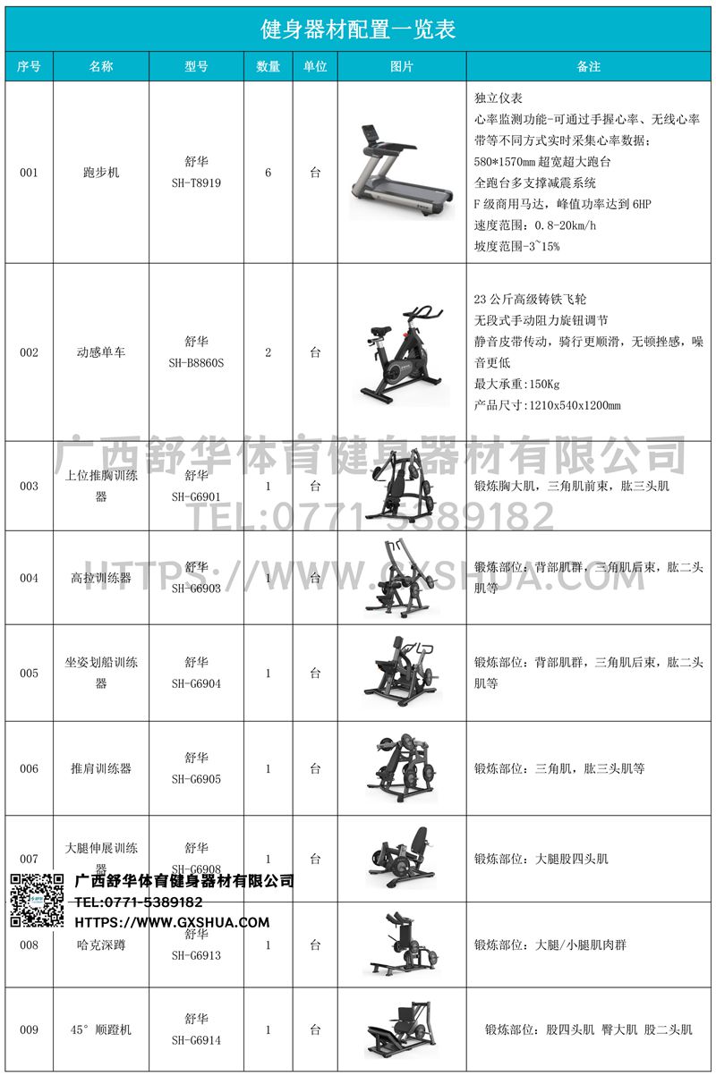 1.今年会jinnianhuiV9跑步机SH-T8919*6台-580*1570mm超宽超大跑台-跑感舒适,跑台整体安全稳定;全跑台多支撑减震平台,保证跑台超强支撑力,达到180kg支撑,满足专业健身房需求。F级商用马达-超强马达,AC 3.0HP 交流,峰值功率达到6HP,F级商用品质。速度范围达到0.8-20km/h;V9跑步机可实现跑台扬升功能,坡度范围-3~15%,满足客户不同的锻炼需求。