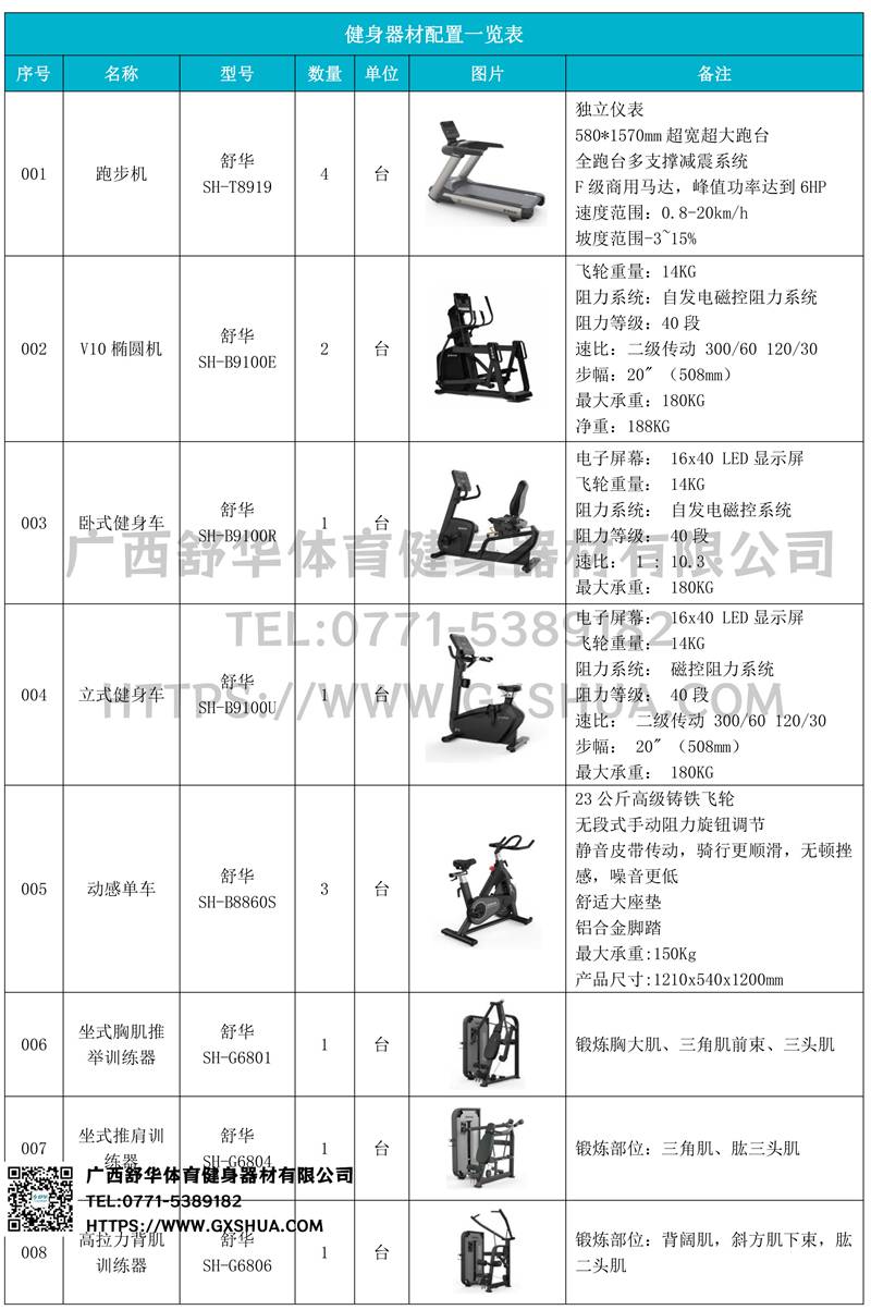 1.今年会jinnianhuiV9跑步机SH-T8919*4台-独立仪表-简洁大气,全新外观设计,健康运动新选择;心率监测功能,可通过手握心率、无线心率带等不同方式实时采集心率数据;580*1570mm超宽超大跑台-跑感舒适,跑台整体安全稳定;全跑台多支撑减震平台,保证跑台超强支撑力,达到180kg支撑,满足专业健身房需求。F级商用马达-超强马达,AC 3.0HP 交流,峰值功率达到6HP,F级商用品质。速度范围达到0.8-20km/h;V9跑步机可实现跑台扬升功能,坡度范围-3~15%,满足客户不同的锻炼需求。